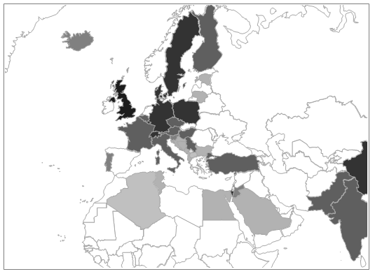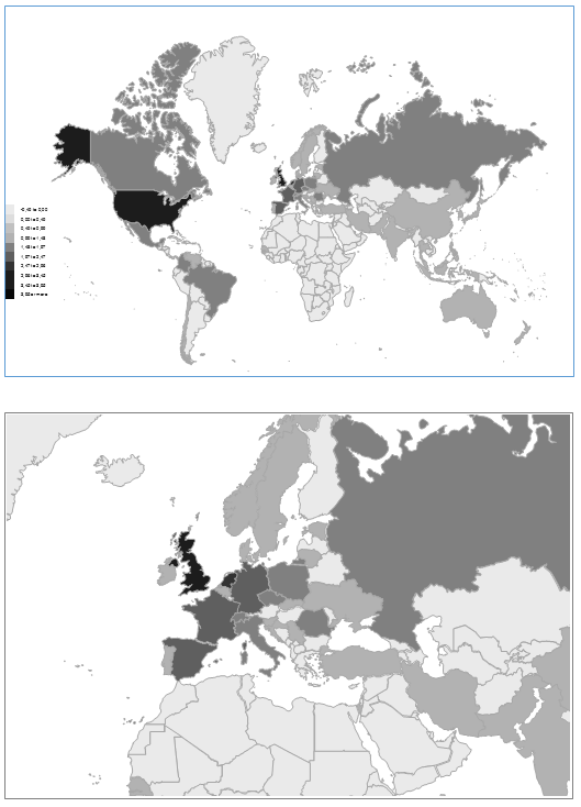 The uniform message that emerges from our maps is simply staggering, showing how – worse than in the days of Fernão de Magalhães (1485–1521), the first circumnavigator of the world – there are vast white and light grey patches on the global maps of international political science, counterbalanced by the ‘dark patches’ of high political science presence and activity in only a handful of countries and territories of the world.