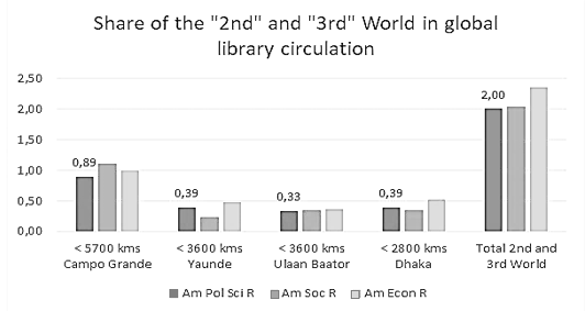 An analysis of the geographical distribution of the global library holdings of the American Political Science Review, the official journal of the world's most prestigious professional association of political scientists, provides a succinct and unsparing account of these truly shocking details of the limited global dissemination and low visibility of scientific knowledge today. The aforementioned journal – a symbol of political science as it is understood in the world's leading universities and research centres, and where every department head today jubilantly congratulates his or her staff whenever an institute publication appears in it – is currently available in 1,797 libraries around the globe. We find these copies only in the following libraries of the ‘Second’ and ‘Third World’: