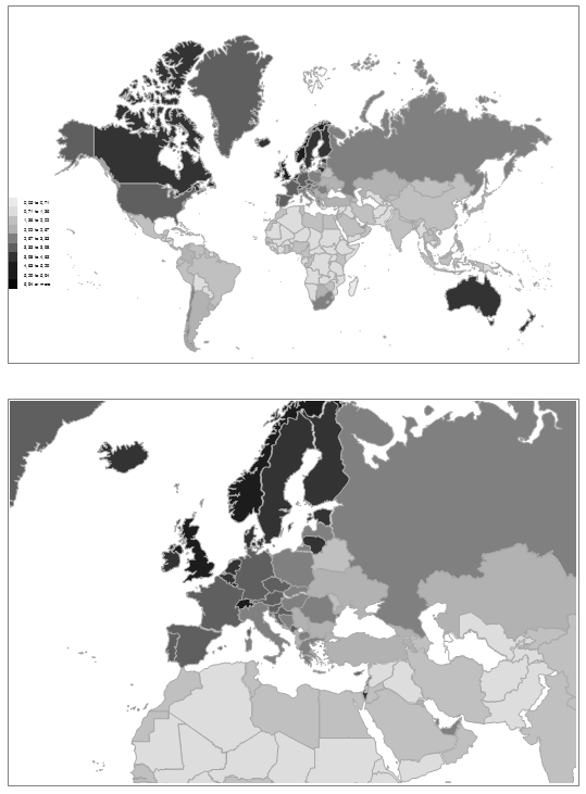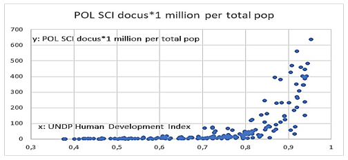 The following statistical documentations show, on the one hand, the correlation of political science activity in a country with the well-known UNDP Human Development Index (Fig. 12).