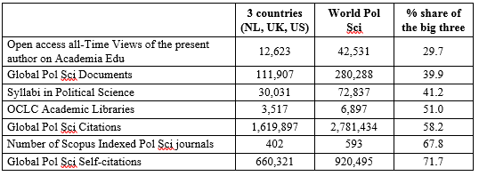 Table 12. The share of the Netherlands, the UK, and the United States in global political science resources